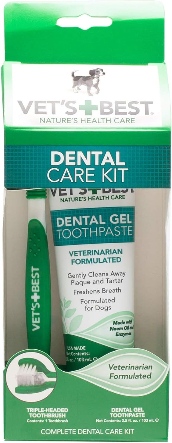Vet's Best Dog Toothpaste & Dog Toothbrush, Dental Kit, Plaque Remover for Teeth, Whitens Teeth, Freshens Canine Breath, Veterinarian Formula, Finger Toothbrush Included