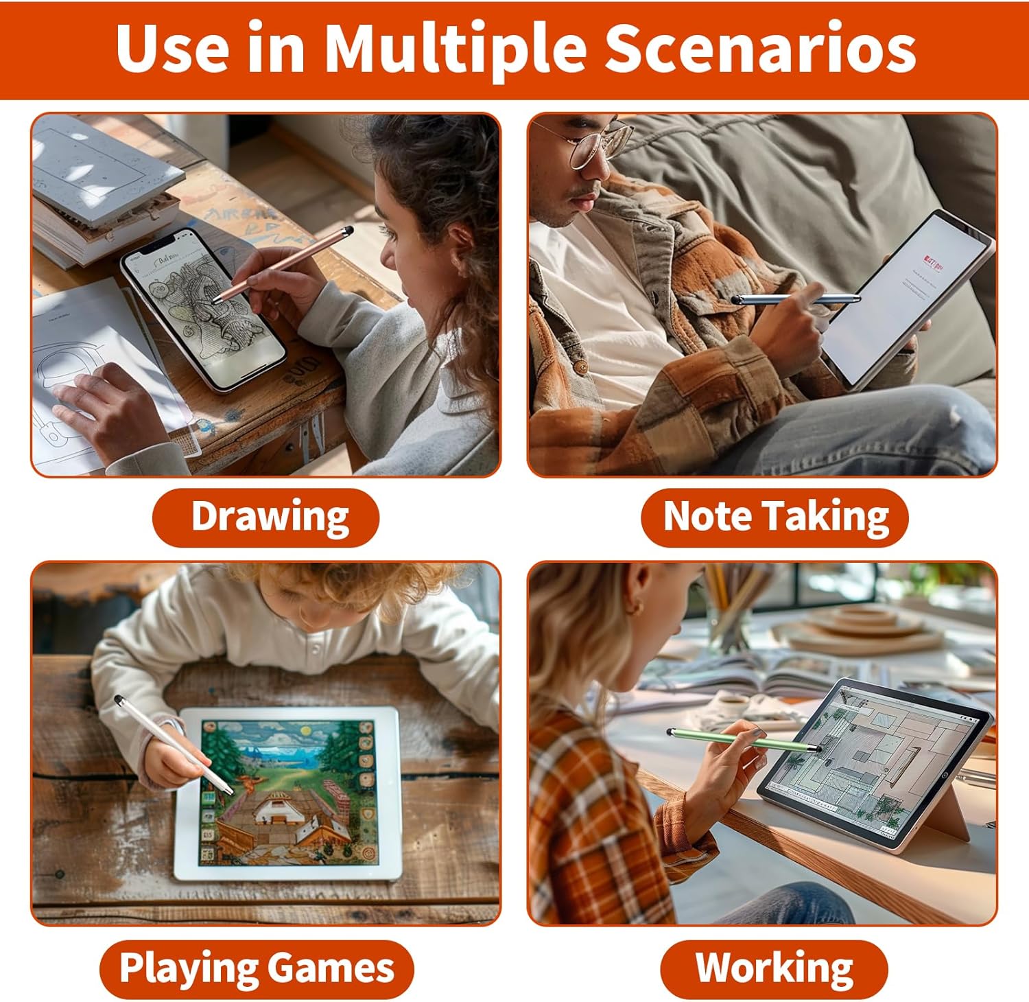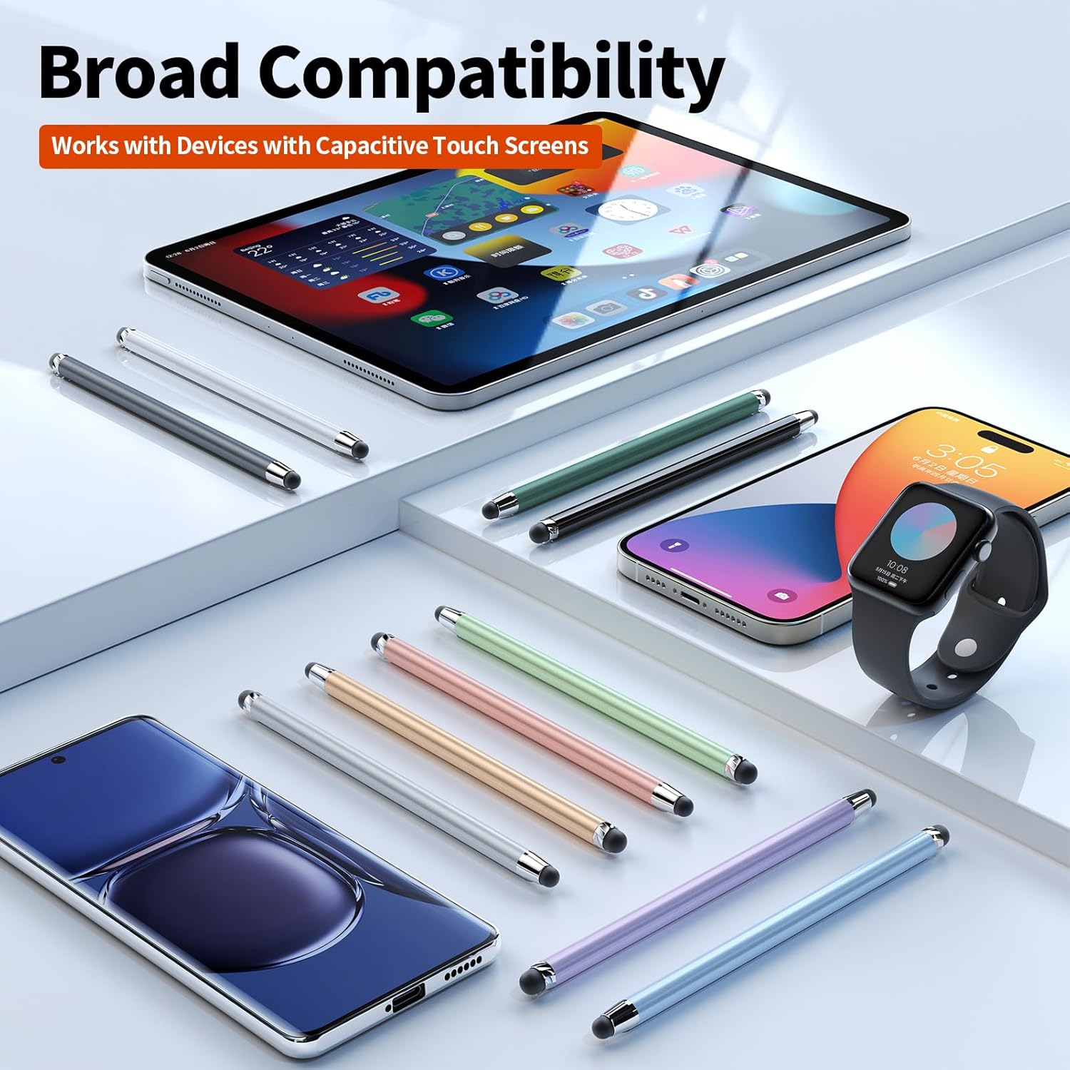 - Wide Compatibility Universal styluses for use with touch screen devices including smartphones, Apple iPad/ iPhone/ iPod/ Android tablets and other capacitive touch screen devices. You can use it like a real pen.