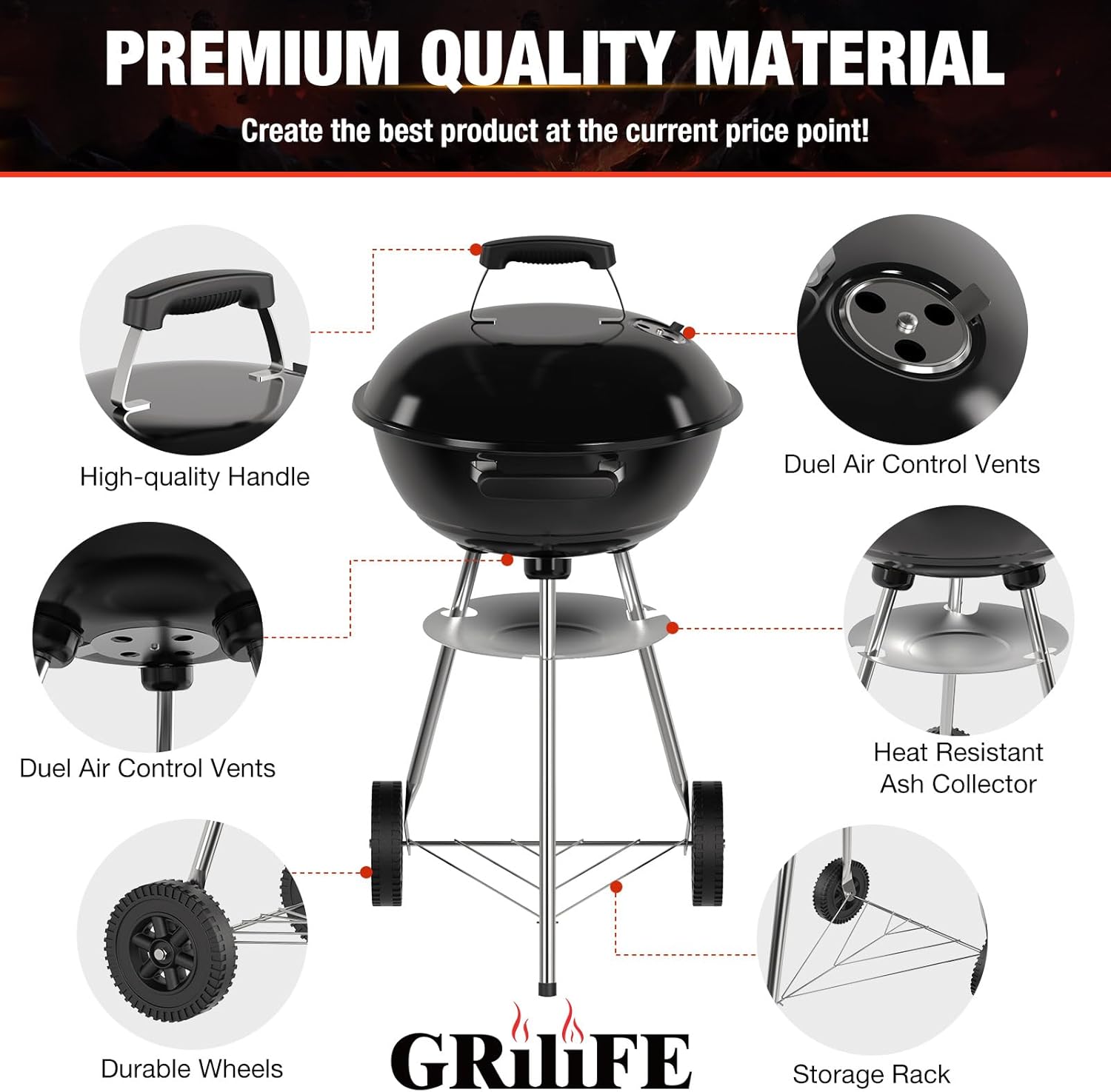 - Optimal Setup, Easy to Move – Our portable grill has high-quality wheels and handles, making it a breeze to move around. Backyard, park, camping trip, beach—wherever you go, you can haul it effortlessly with no worries. It’s the perfect pick for all your grilling needs.