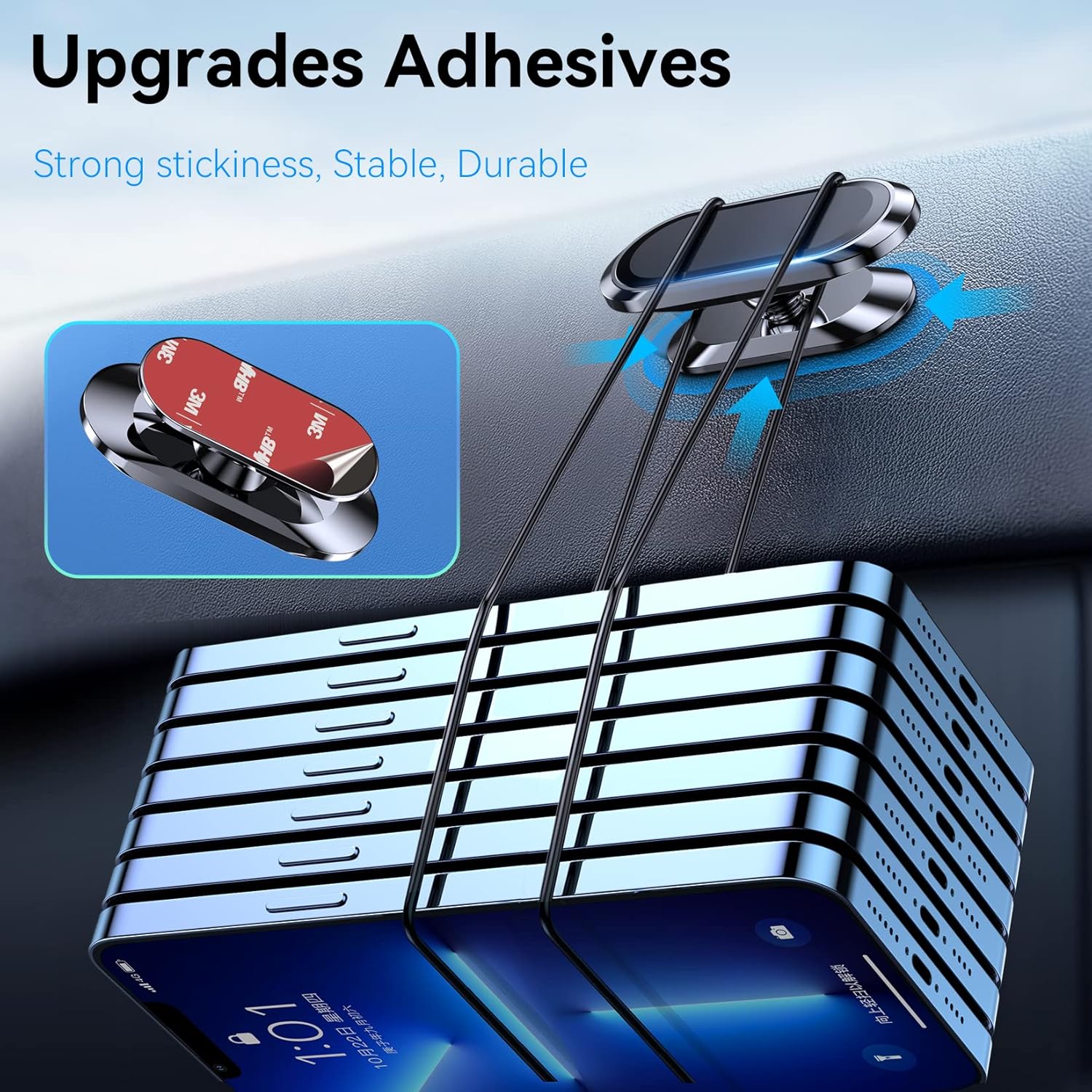 - SUPER STICK FORCE: VHB adhesive provides strong stick force between the dashboard and the car phone holder, which can firmly stick to any plane in the car, fix your device, adapt to a variety of road conditions such as sudden braking, speed bump, and rugged mountain road.