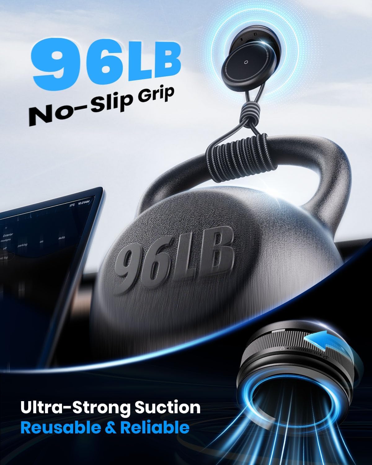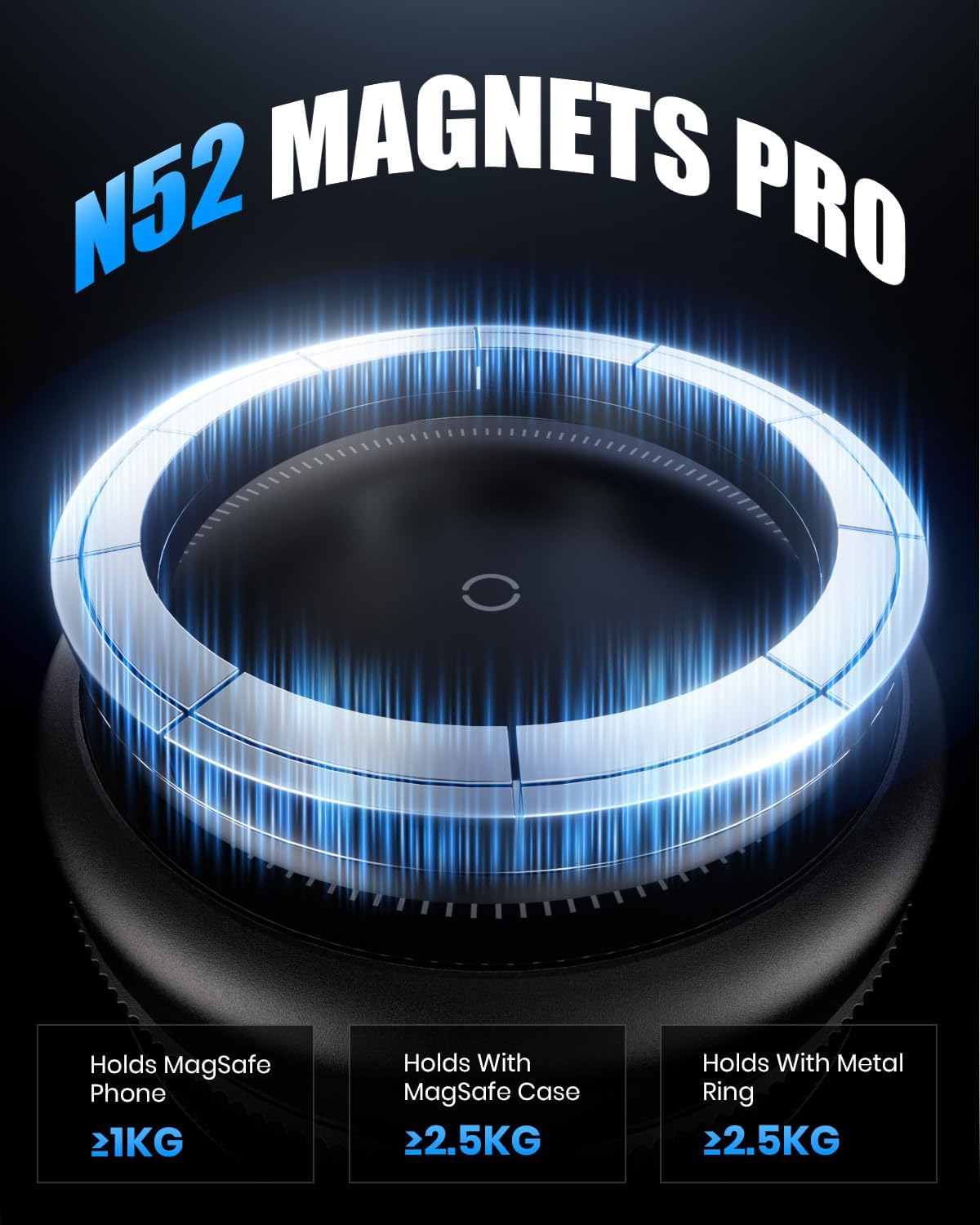 - Strengthened Grip, Steady Hold The vacuum magnetic phone holder uses N52 magnets with 2800GF pull force and strong suction to lock your phone tightly in place. It stays secure even on bumps, sharp turns, and sudden stops. Mount it on smooth surfaces or use the round base for textured surfaces.