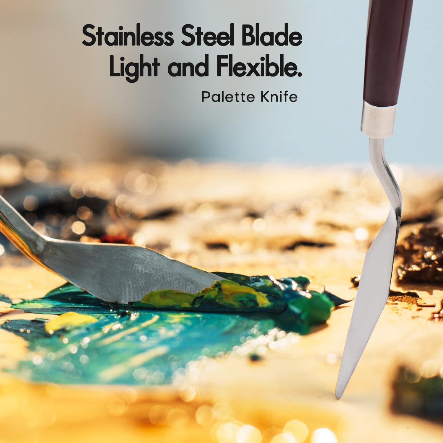 - Variety of Shapes & Sizes: Paint brushes for acrylic painting set includes 24 brushes in 9 series (Large Wide Flat, Flat, Filbert, Fan, Dagger, Cat Tongue, Round, Angle, Rigger), 1pc palette knife, 1pc portable canvas roll. A selection of sizes allows you to bring your vision to life on a large scale, in tiny detail, or anything in between!
