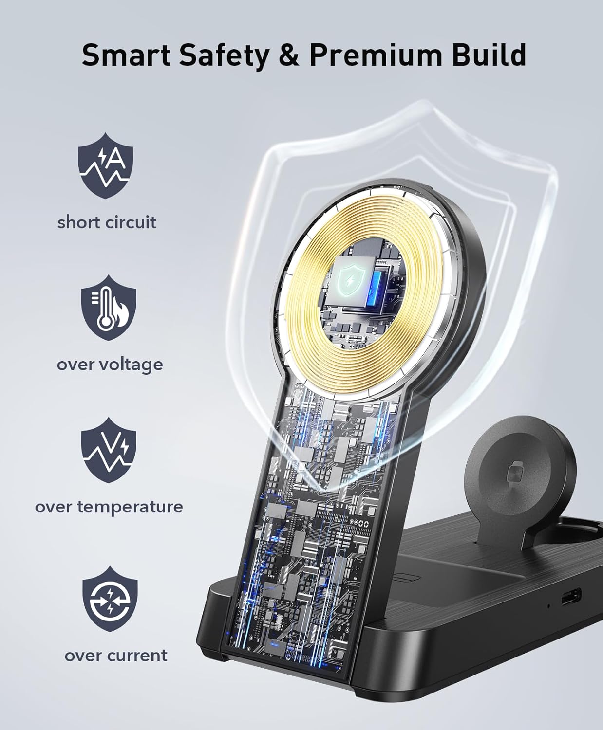 - Perfect for Multi-Scenario Use: 1> Bedside: Nightstand Mode: Soft Charging Indicator Light Ensures Undisturbed Quality Sleep. 2> Office: Vertical Stand for FaceTime/Notification Viewing. 3> Travel: Lightweight (5.28oz). 4> Gift: The 3 in 1 charging station is perfect for Festive Gift Christmas, Thanksgiving Day and Birthday).