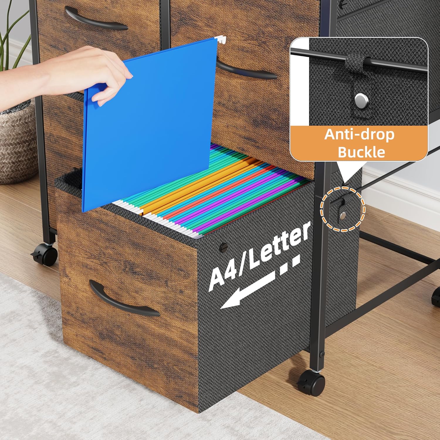 - Sturdy & Durable Construction Built to last, the file cabinet for home office combines a sturdy steel frame with a 1.2X thicker engineered wood board and firm fabric-clad drawers—far sturdier than flimsy alternatives. It ensures long-lasting stability, making it a reliable storage solution for your home or office