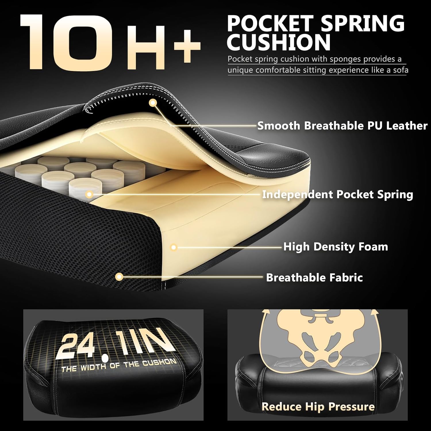 - Extra Wide Breathable Leather Large Office Chair: Our executive office chair is equipped with a spring cushion to reduce hip pressure. The extra-wide chair backrest and independent lumbar support gently wraps your body and supports your lower back, thoughtfully designed to keep you comfortable during long hours of working, studying or gaming.