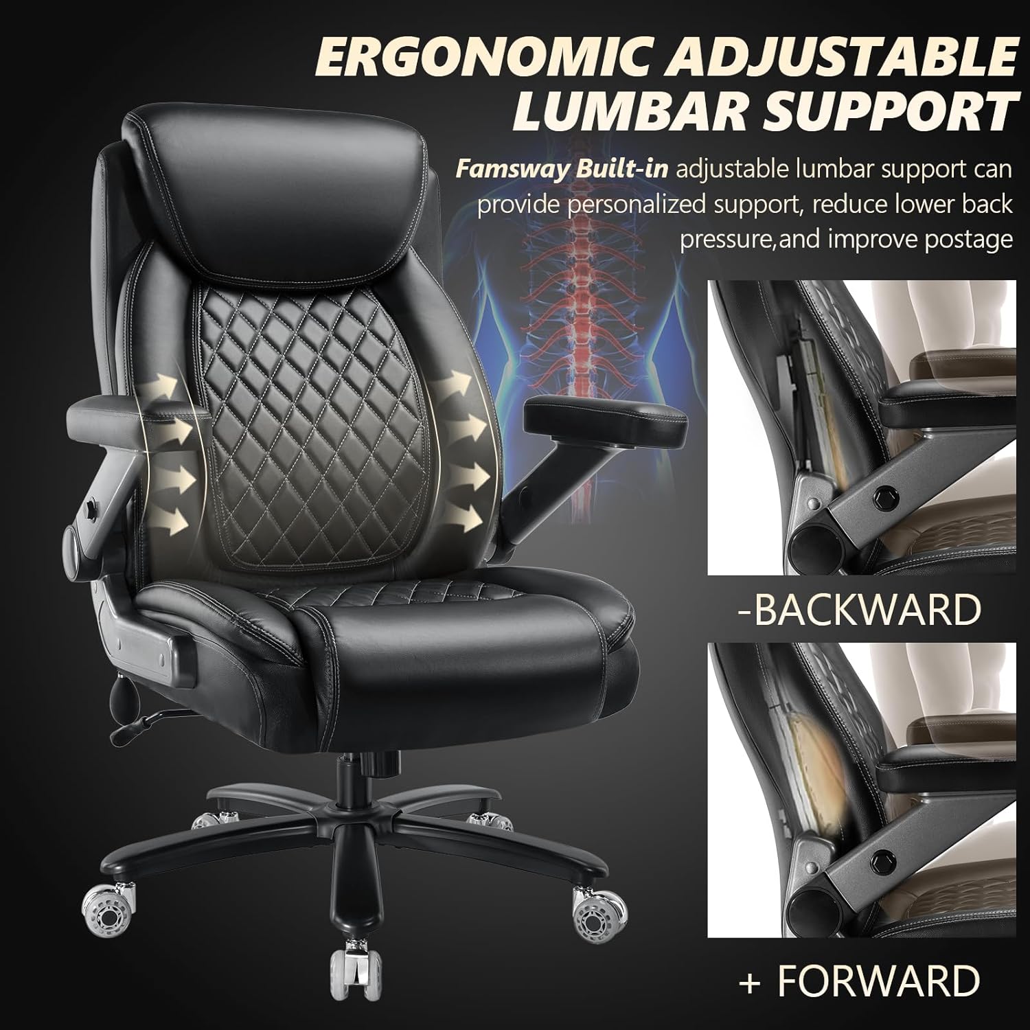 600LBS Large Heavy Duty Office Chair with 5D Flip Arms,Comfy Big and Tall Executive Office Desk Chair with Pocket Spring Cushion,High Back Computer Chair with Lumbar Support,Dual Rubber Wheel