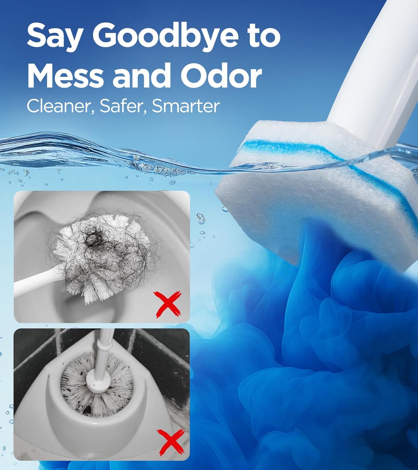 - ONE-CLICK, TOTAL CLEAN! The toilet cleaner refill pad features a no-touch design, just press the button to easily replace and discard the used pad. Say goodbye to filthy toilet brushes, lingering odors, and stain buildup with traditional designs. Smelly toilet? Not anymore! Each toilet scrubber brush is infused with a refreshing scent that eliminates bad odors for good. Turn every clean into a burst of freshness that lasts.