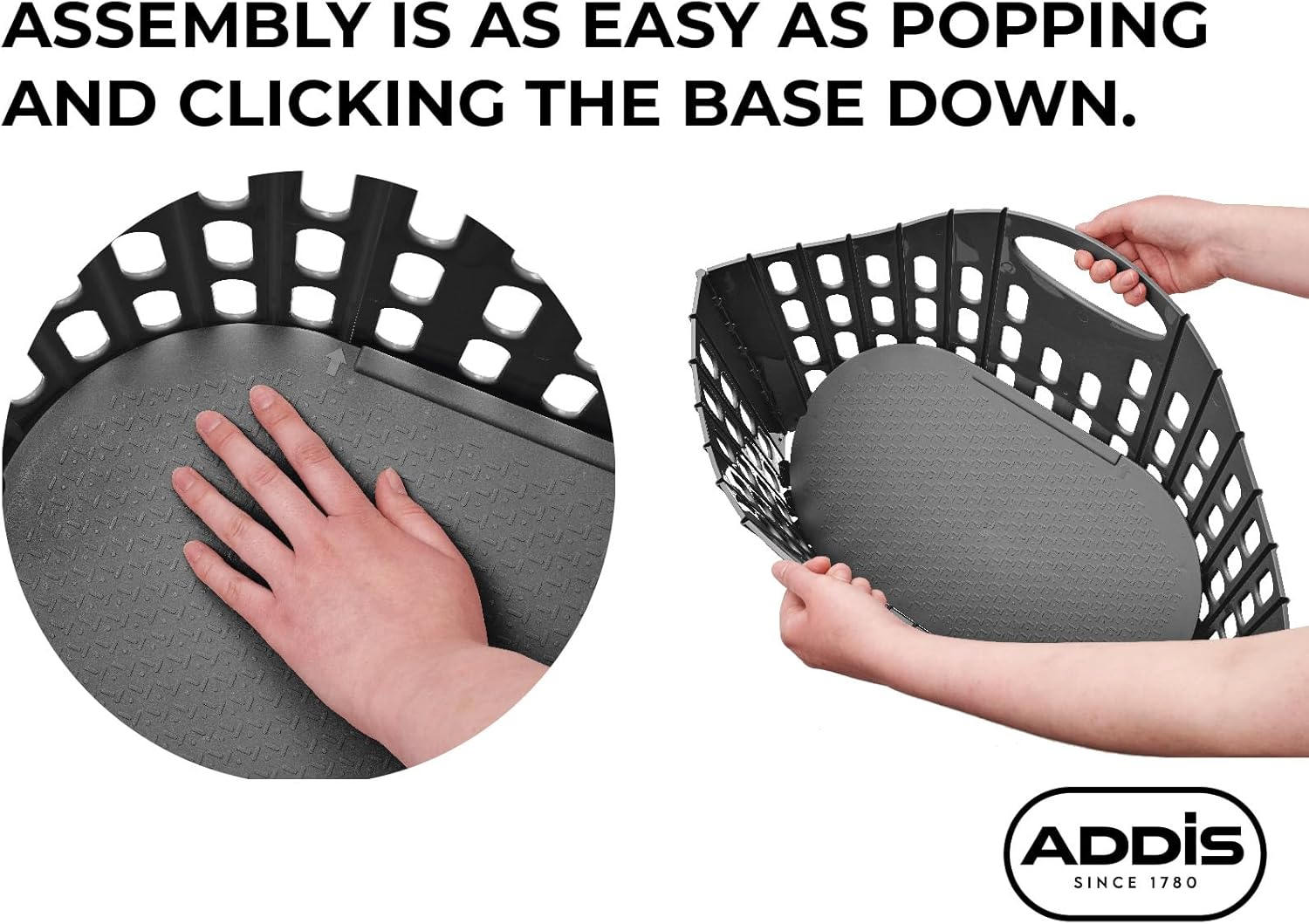 Addis Flat Easy Store Laundry Basket Hamper, Dark Grey, 38 Litre