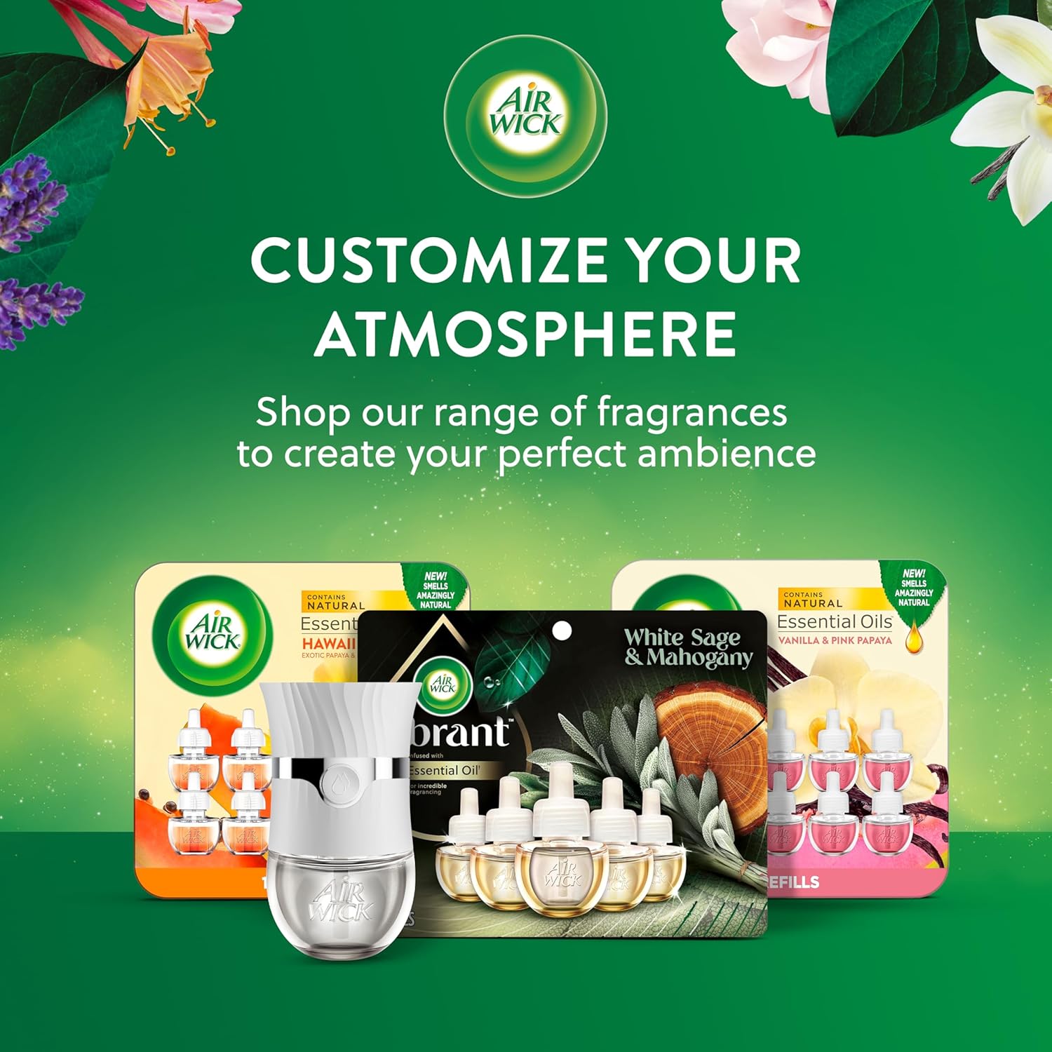 - WARMER: Easy adjust warmer with 5X fragrance settings. Refills are compatible with all versions of Air Wick plug in warmers