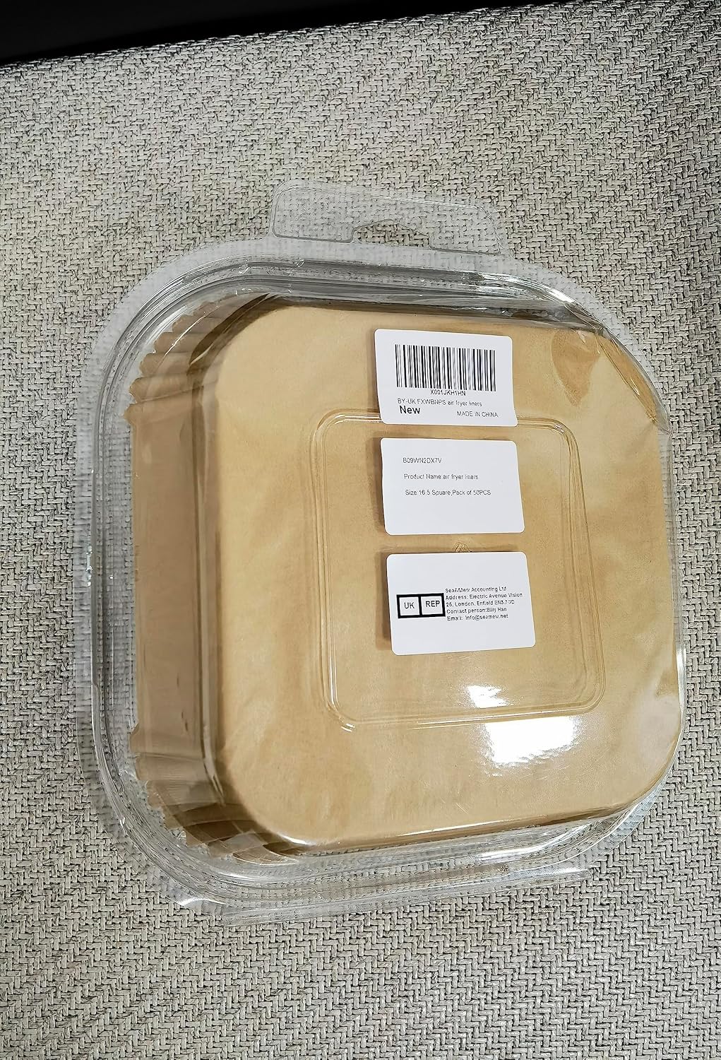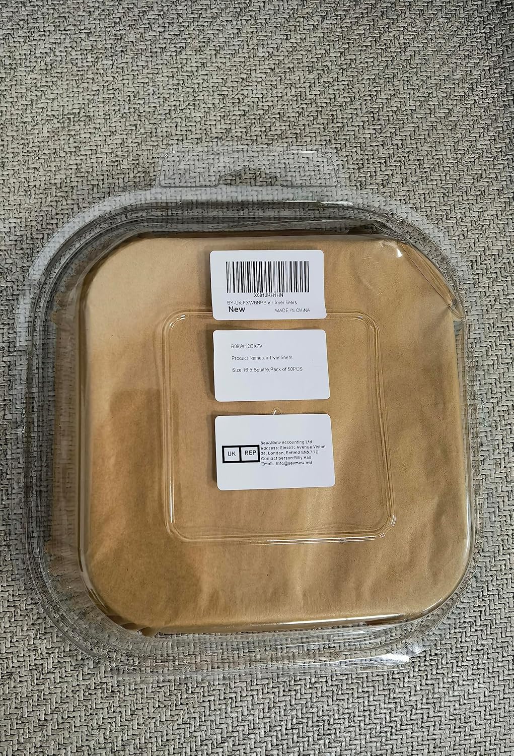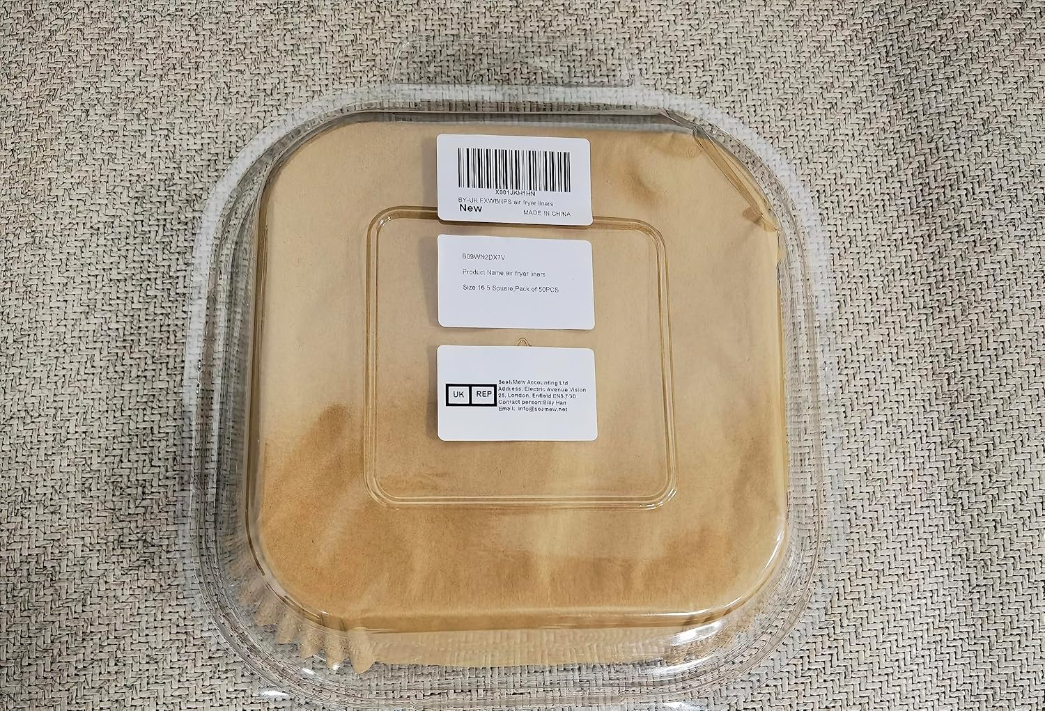 BYKITCHEN Air Fryer Parchment Paper Liner, 50PCS Square Air Fryer Liners Disposable, Greaseproof Paper, Compatible with COSORI, Ninja, Tefal, Russell Hobbs Fryers (Unbleached)