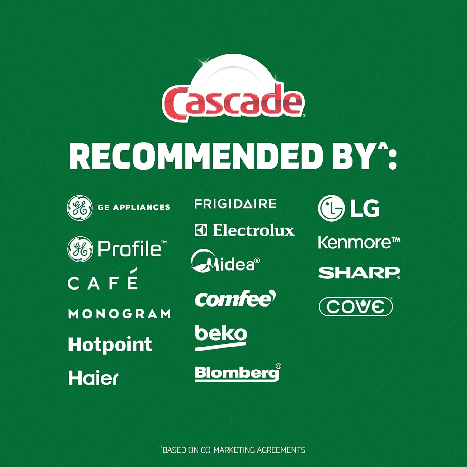 - 1 Recommended Brand in North America More dishwasher brands in North America recommend Cascade based on co-marketing agreements vs. other automatic dishwasher detergent brands