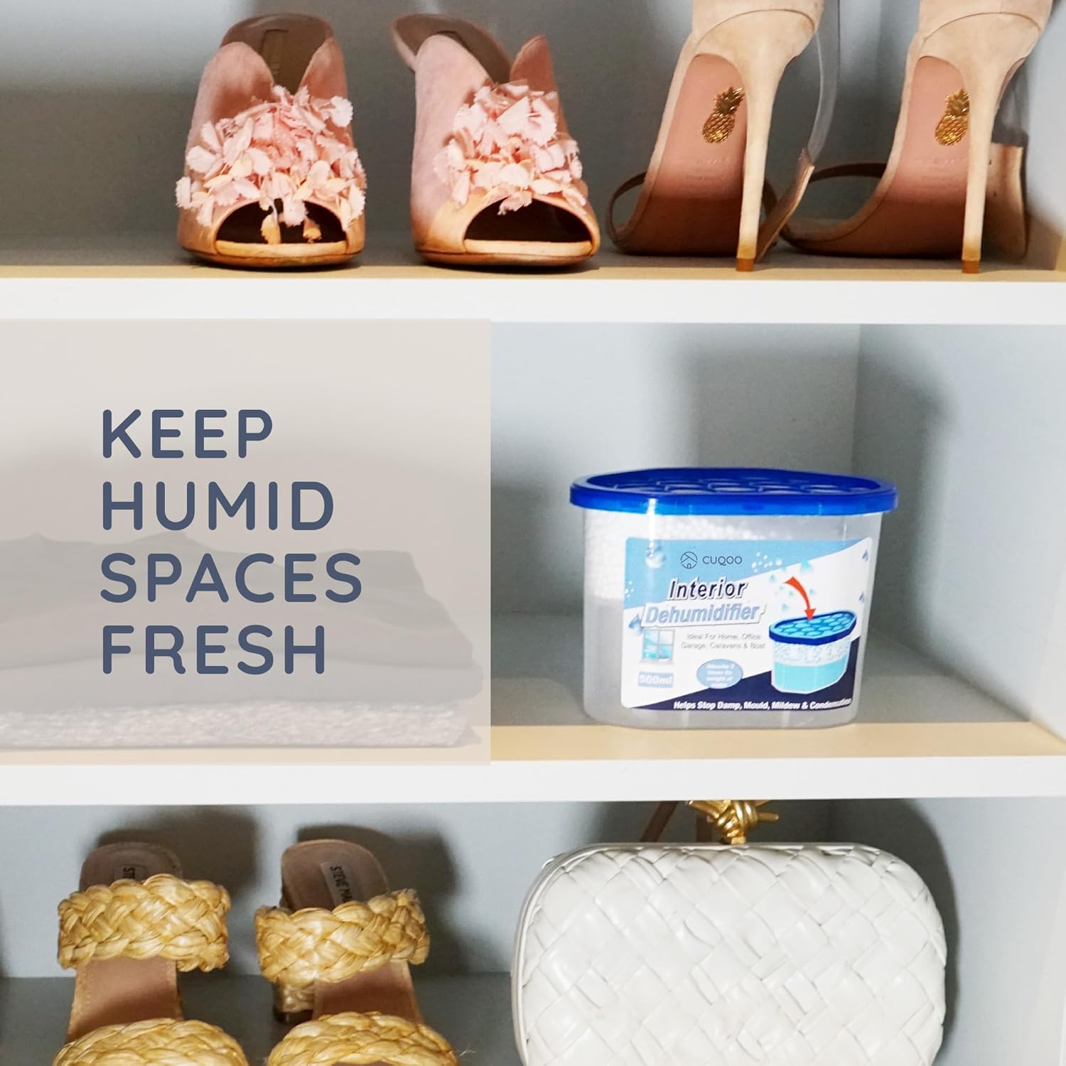 - PREVENTS MOULD AND MILDEW: CUQOO disposable dehumidifiers absorb moisture to prevent damp, mould, and mildew. Keep your home dry and fresh with these moisture absorbers, perfect for improving air quality and eliminating musty smells.