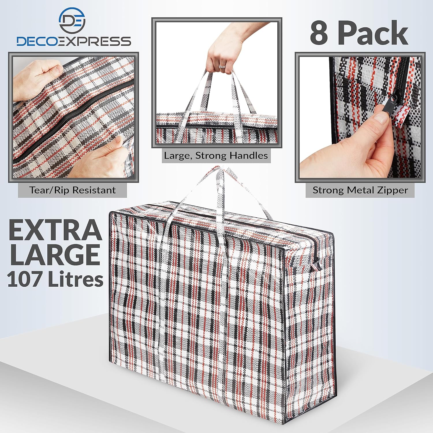 DECO EXPRESS Laundry Bags Large - Strong Durable Storage Bags for Moving House Shopping and Laundry - Jumbo Reusable Zip Bag Storage Bags XXL Multipack (Pack of 8)
