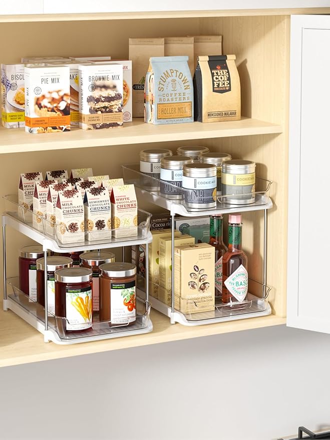 - Stackable Pantry Storage Organizer: What sets this pull out cabinet organizer apart is that you can stack 3 at a time according to space needs, which means it is a must-have space saver! it is very useful for organizing to hold spice jars, medicines bottles, beverages, canned goods, grab-and-go snacks, and even a variety of health/beauty aides, and small items.