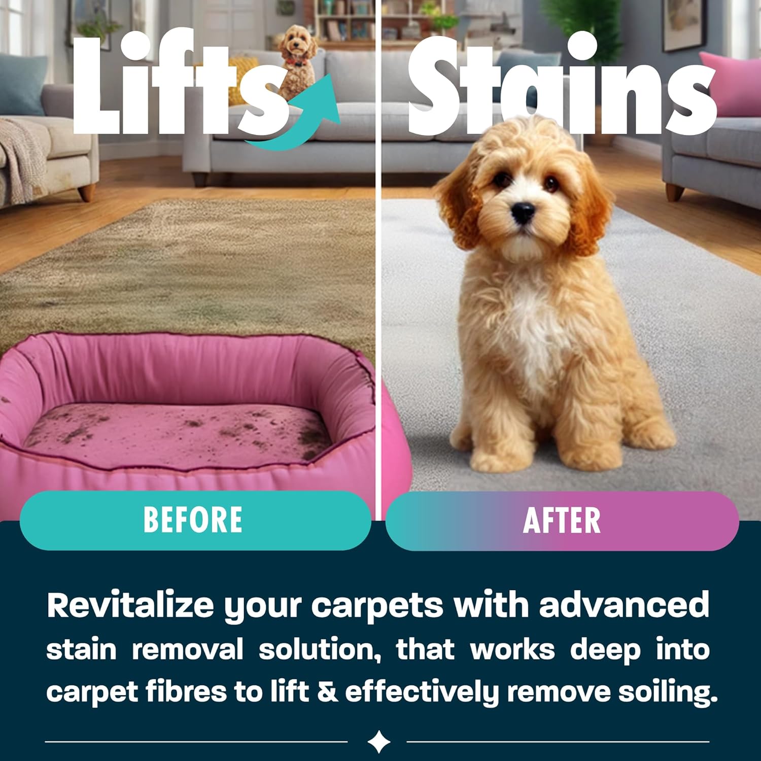 - Powerful Carpet Cleaner Solution Works Deeps Into Fibres To Effectively Clean All Types Of Soiling, Whilst Neutralising Odours & Removing Stains Such As Cat Urine, Faeces, Dirt & General Pet Mess