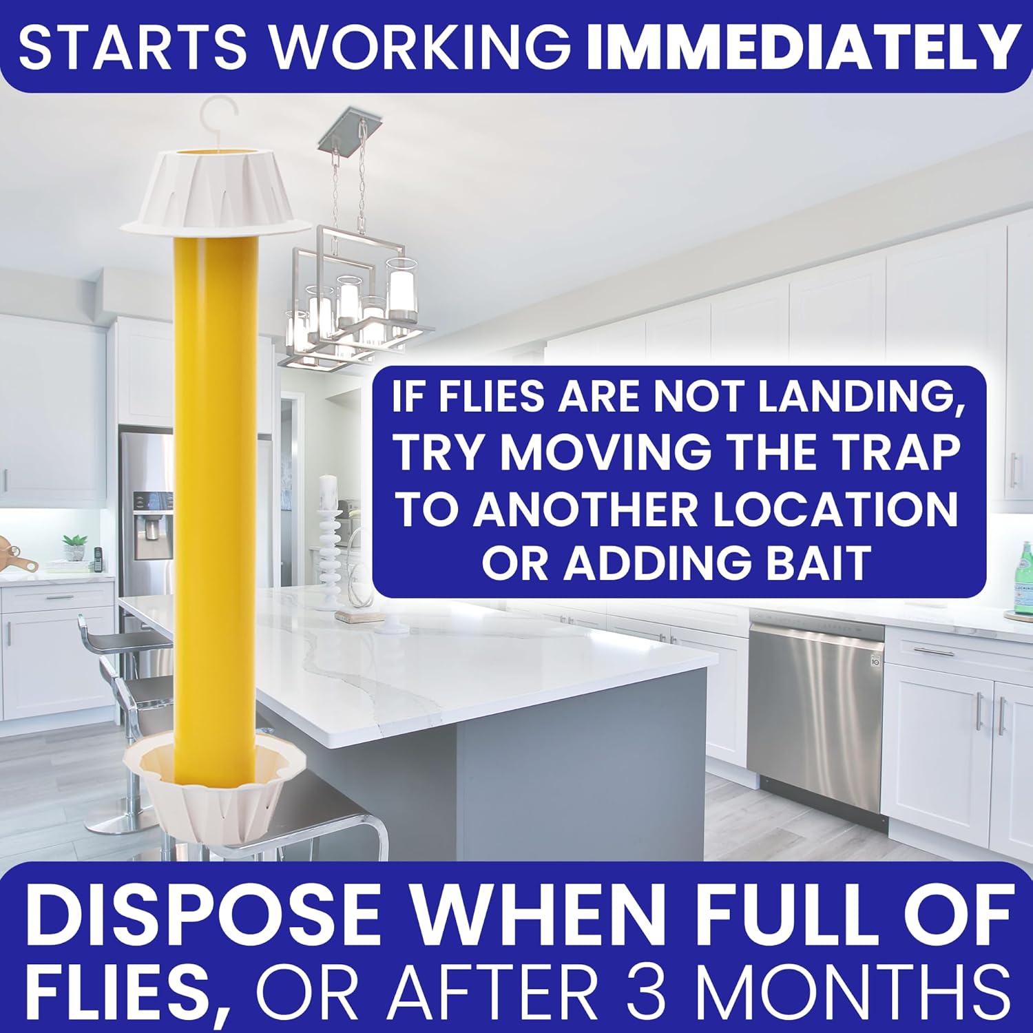 - INDOOR OR OUTDOOR. Use as an indoor fly trap for home or an outdoor fly trap. The fly trap sticky glue is waterproof and will last for 3 months.