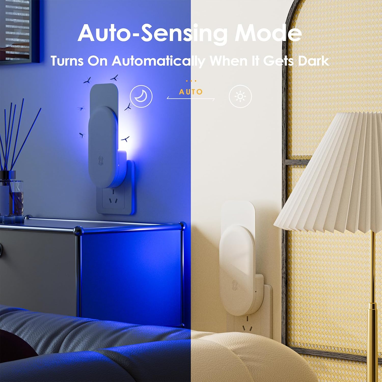 - Smart Night Light Mode: With two LED beads, this Flying Insect Trap offers smart and night light modes for versatile use. The device automatically detects ambient light levels in smart mode, while the night mode provides continuous illumination. Ideal for keeping your room insect-free and well-lit during nighttime hours.