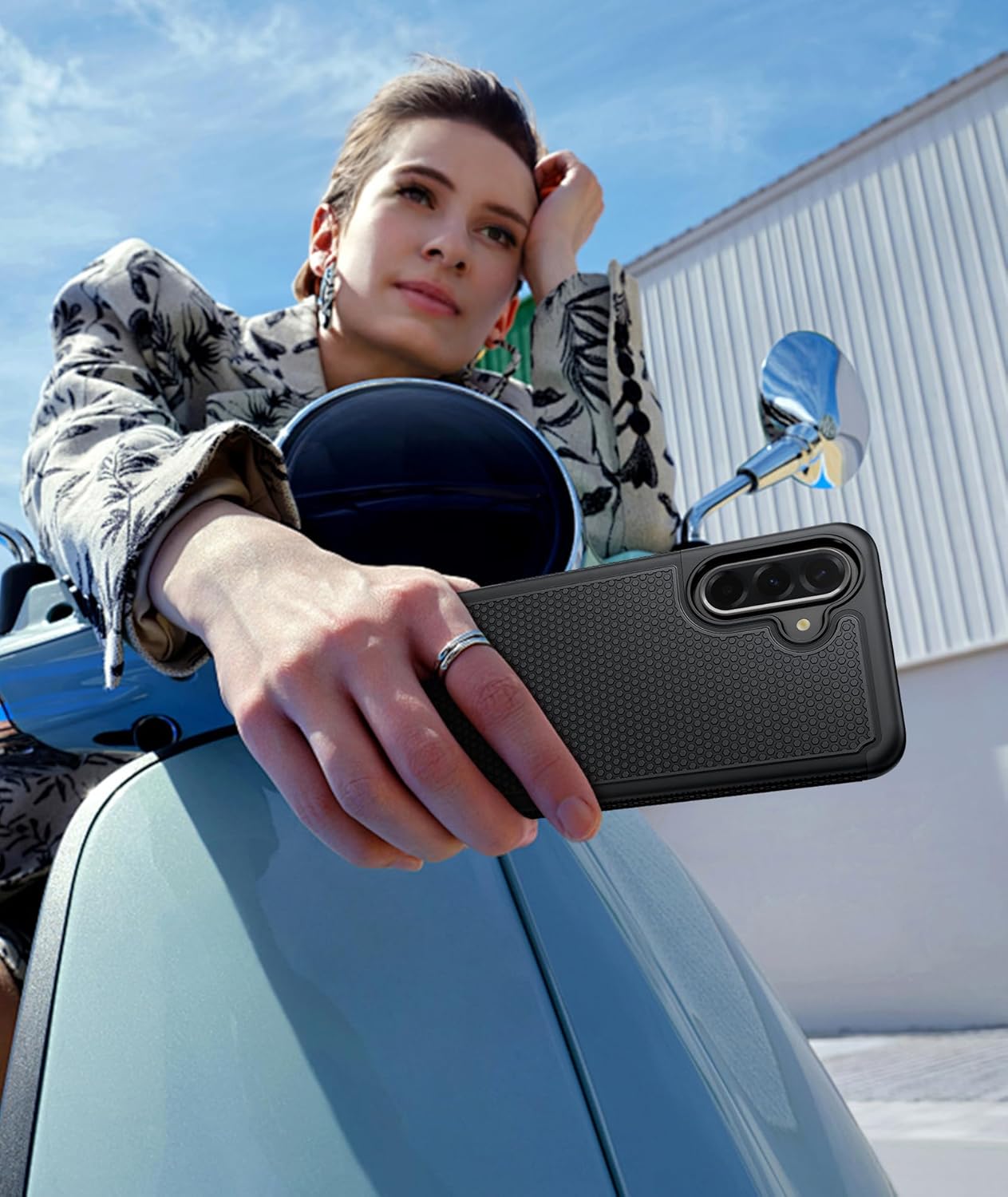 FNTCASE for Samsung Galaxy A16-5G Case: Dual Layer Protective Heavy Duty Cell Phone Cover with Non Slip Textured Back - Shockproof Rugged Military Grade Drop Protection Bumper Tough Black