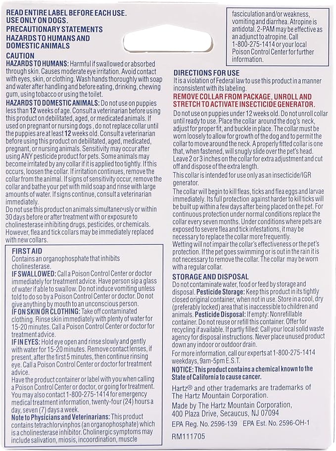 - Kills and repels fleas, ticks, flea eggs and flea larvae, plus prevents flea eggs from hatching for 7 months. Can be worn simultaneously with your dog's regular collar