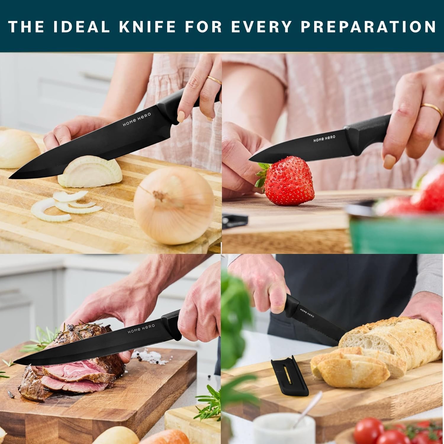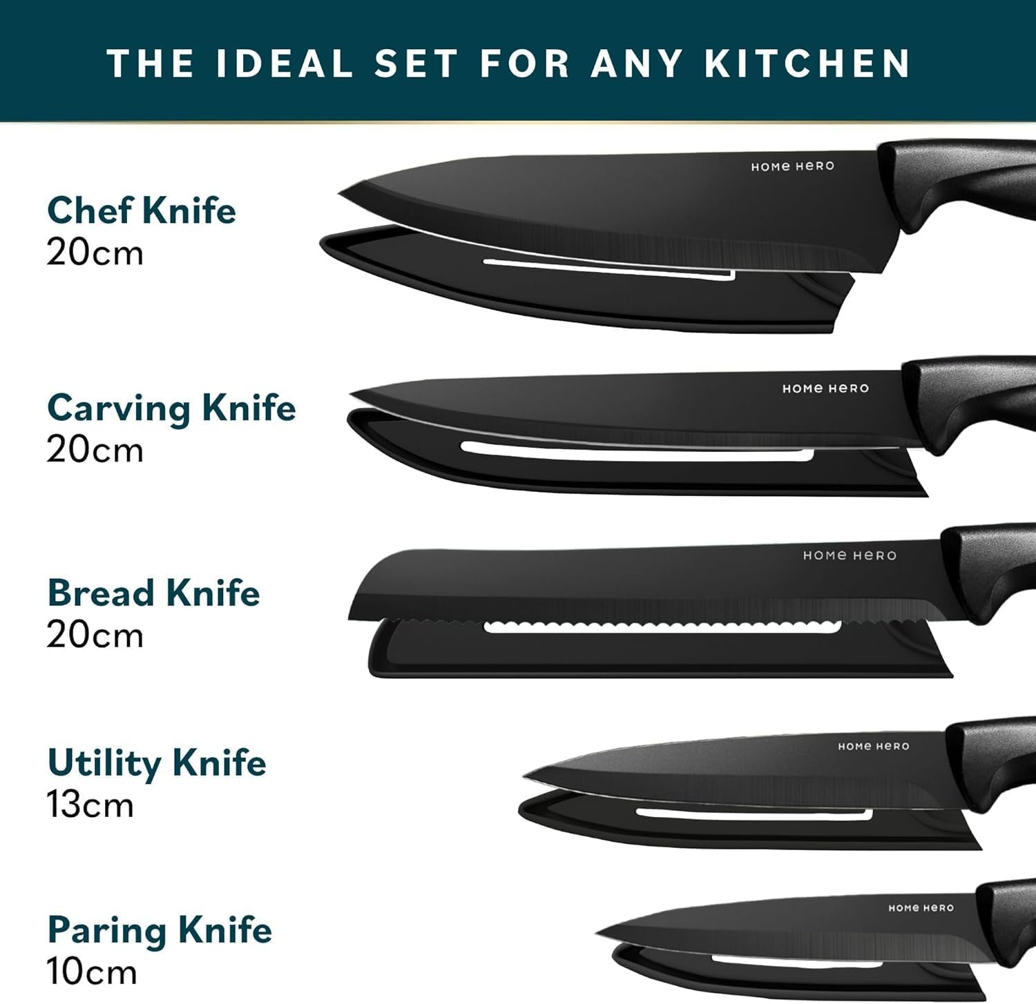 Home Hero Ultra-Sharp Stainless Steel Kitchen Knife Set - Chef Knives Set (11 pcs Set - Black with Sheath)