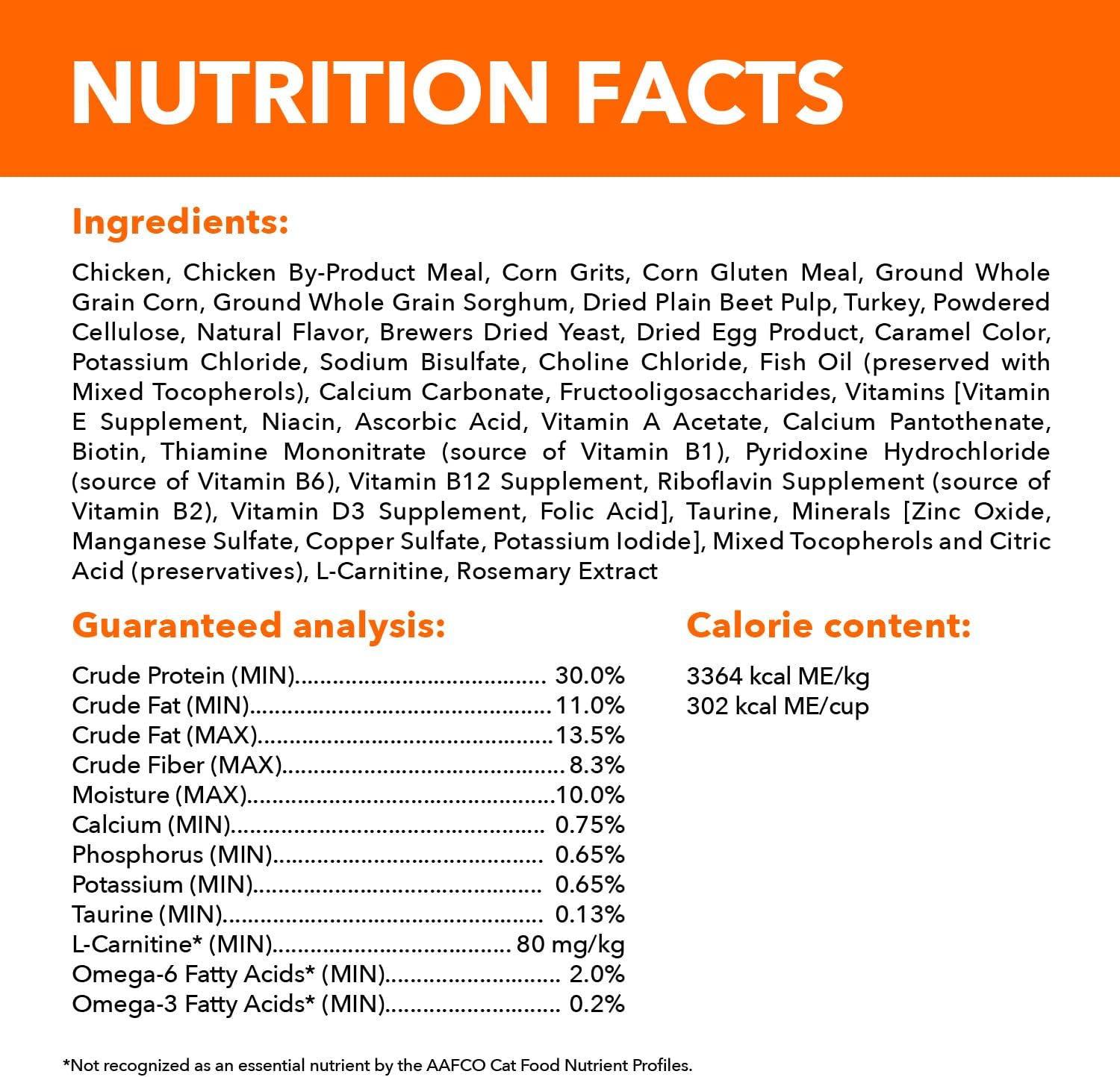 - Weight Control Cat Food: This adult dry cat food is formulated with L-carnitine to help your indoor cat burn fat and maintain a healthy metabolism so they can continue to live a happy life