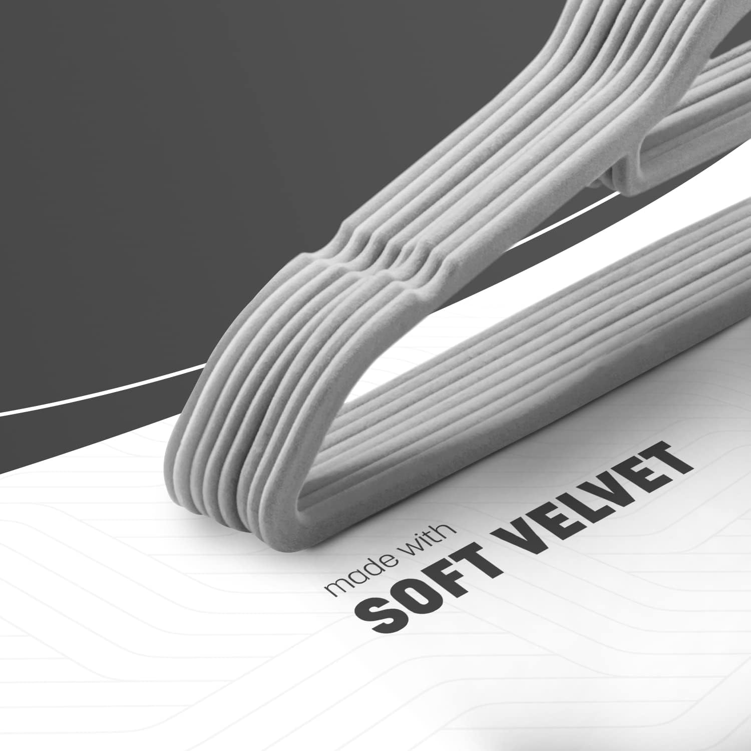 KEPLIN Velvet Hangers 20 Pack - Non-Slip Clothes Hangers with Tie Bar & 360° Hook - Durable & Sturdy, Space-Saving Wardrobe Organisers for Suits, Jackets & Clothes- Home Storage Solution (Grey)