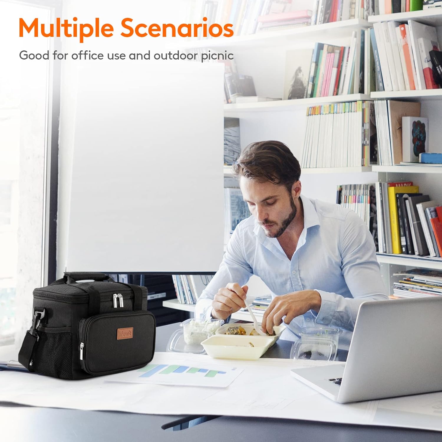 Spacious 9L Capacity: Measures 10" x 6.7" x 8" and holds up to 12 cans (330ml); perfect for packing sandwiches, salads, fruits, snacks, and drinks for work, travel, or picnics