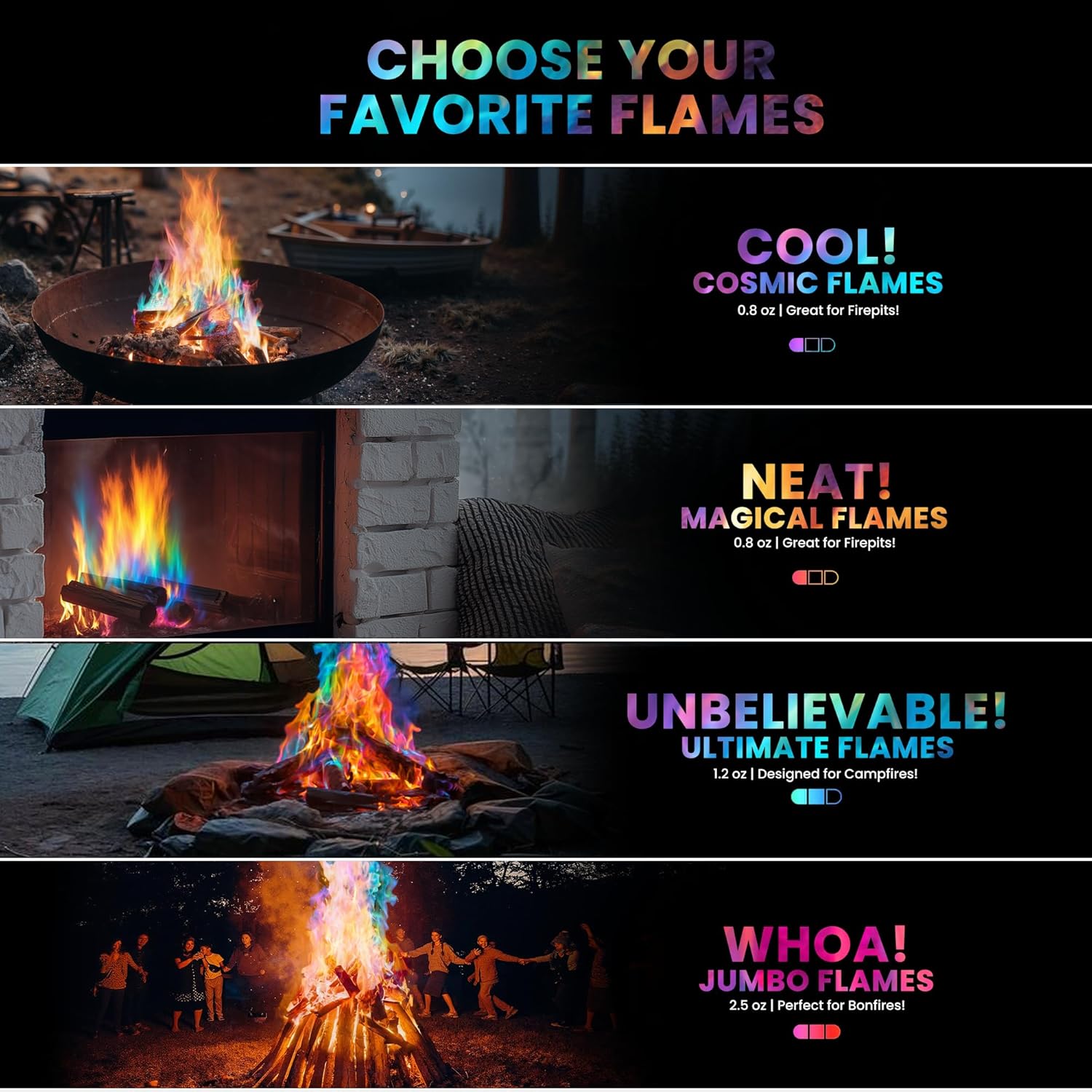 - Fun for All Ages: Whether you're hosting a backyard party or going on a family trip, our magical flames color fire packets deliver brilliant color flames that delight those who love unique surprises. Make every night unforgettable with these must-have fire changing color packets.