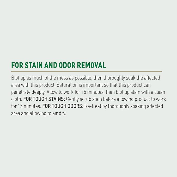 - FOR CAT URINE MESSES: Begins to break down and remove stains immediately on contact.