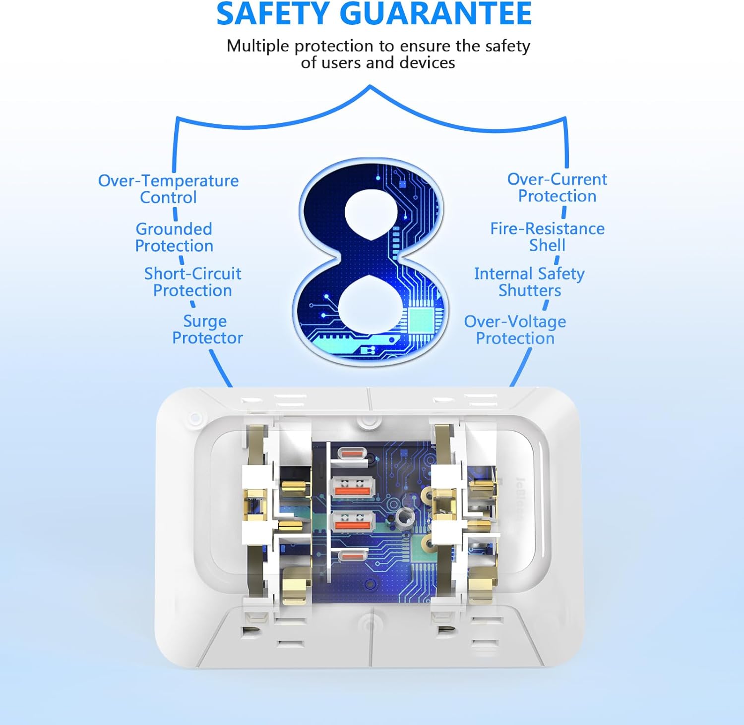 Space-Saving 3-Sided Layout – Prevents plug overcrowding on the wall