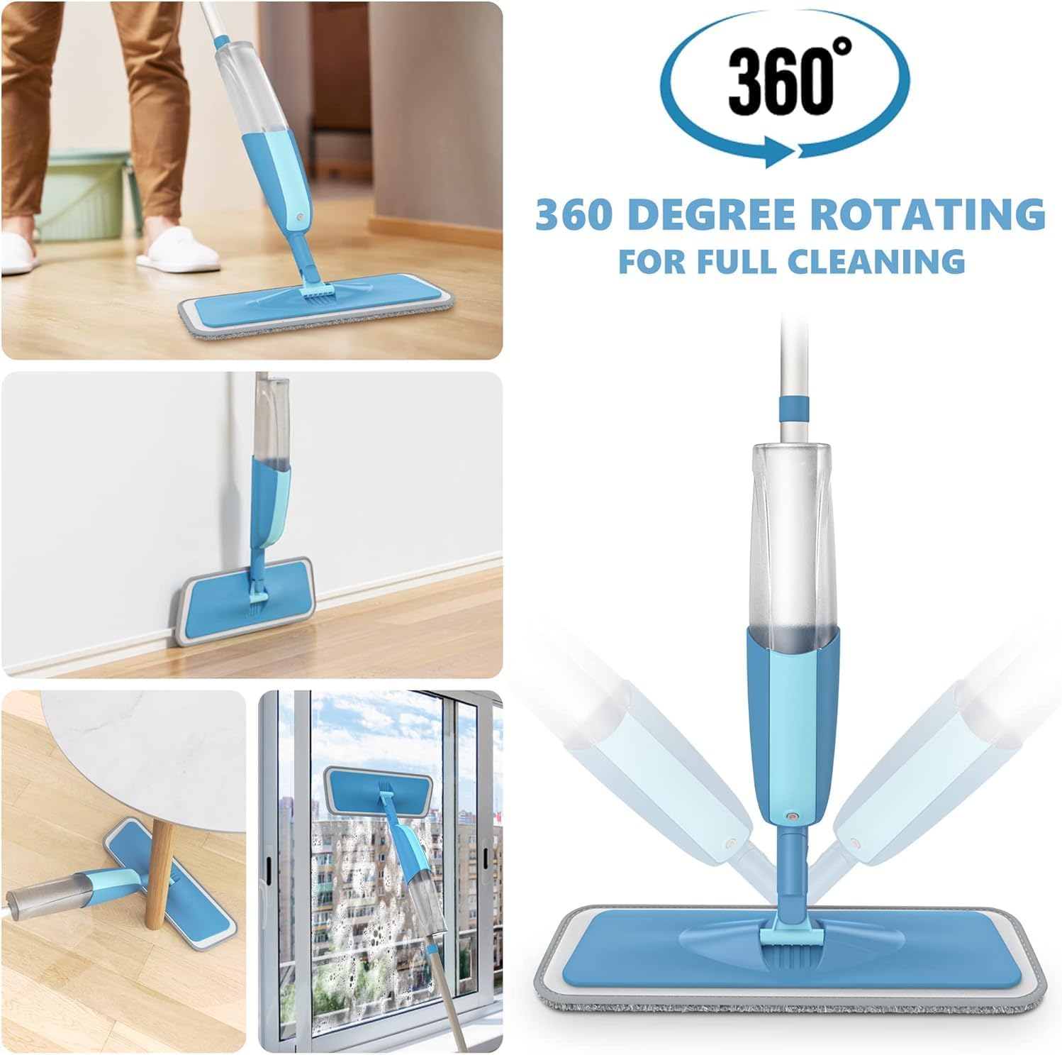 PAPCLEAN Microfibre Spray Mop with 3 Reusable Pads and Refillable Bottle, 360 Degree Spin Mop for Hardwood, Marble, Tile, Laminate, or Ceramic Floors - Cyan Blue