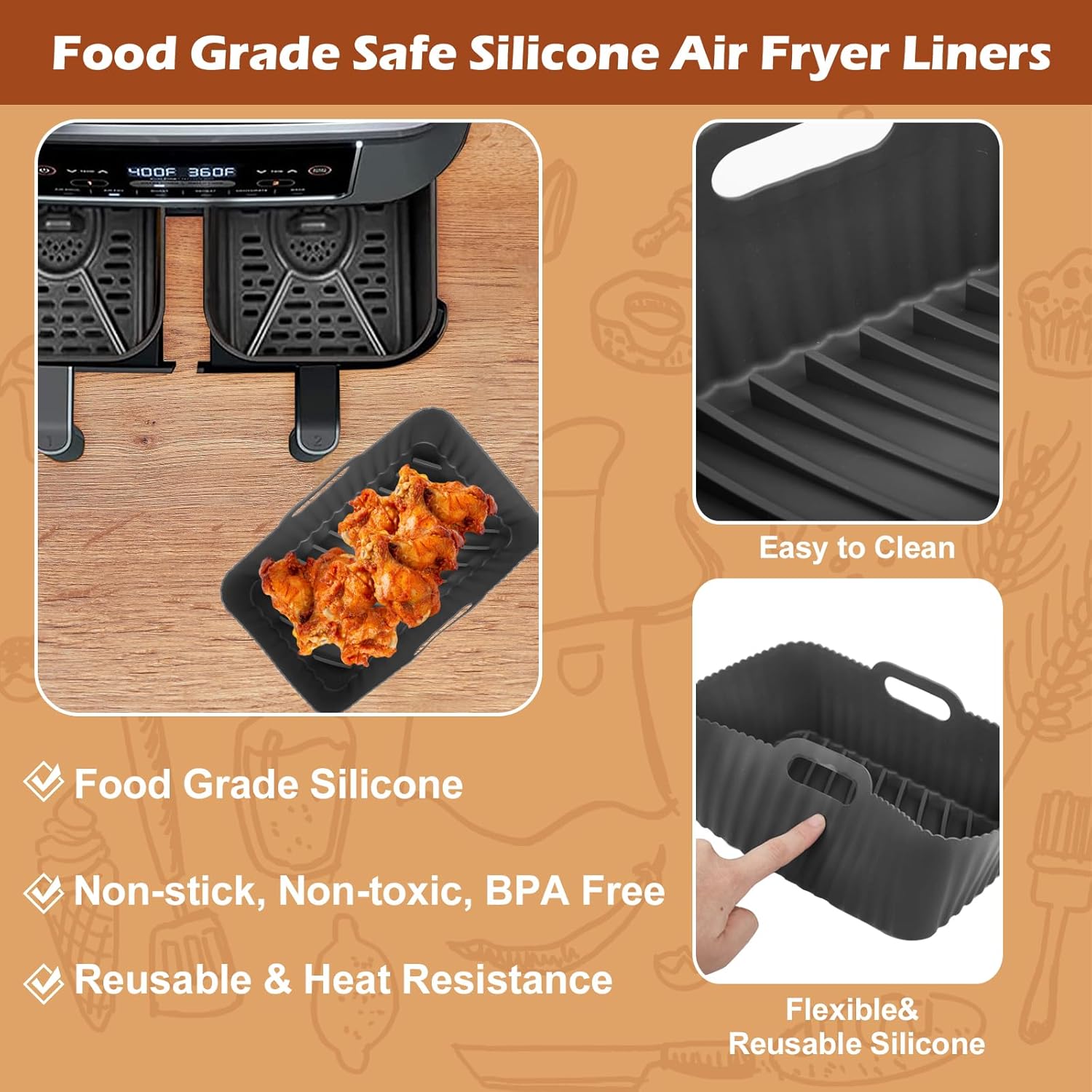 Silicone Air Fryer Liners for Ninja Foodi Air Fryer AF300UK, 2Pcs Ninja Foodi Dual Zone Air Fryer Accessories, Reusable Silicone Dual Basket Air Fryer Liner 7.6L