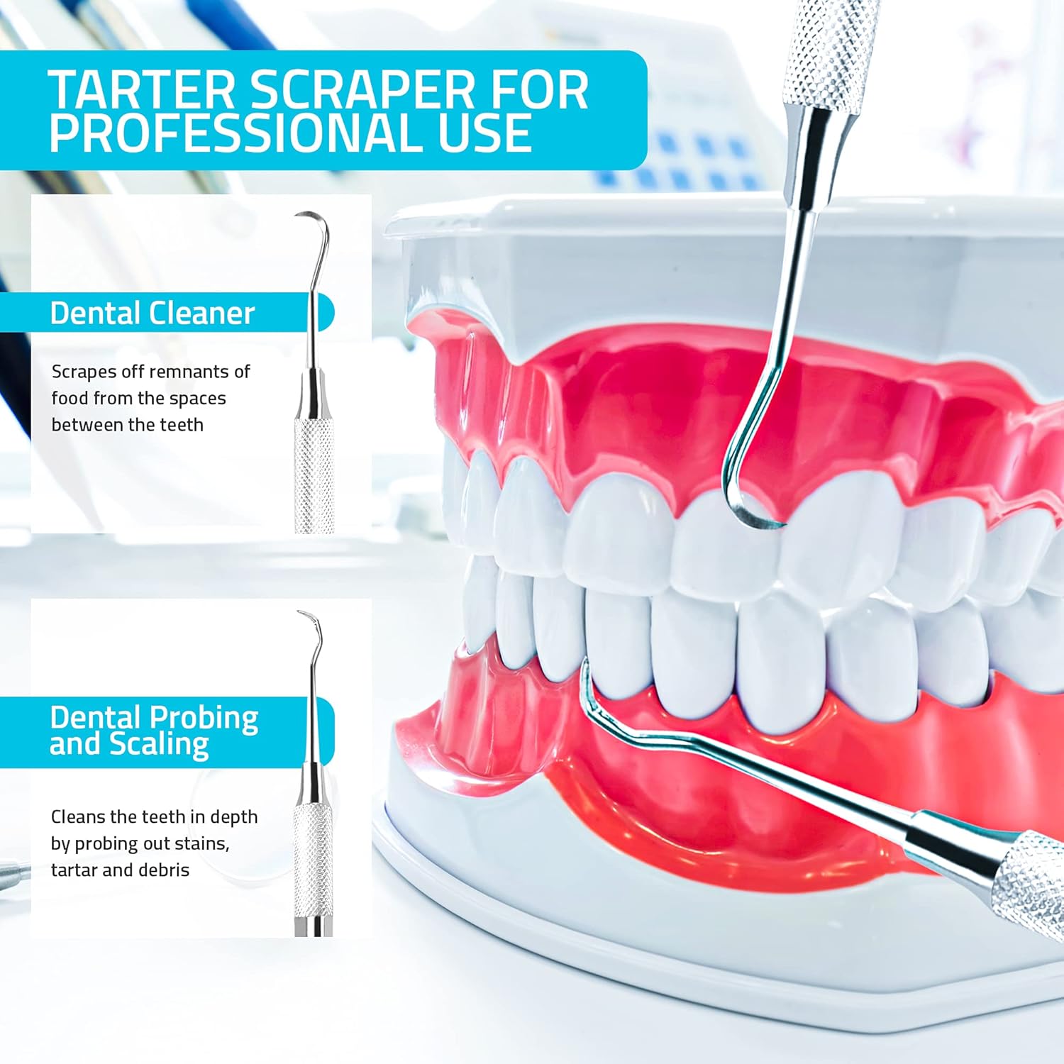 - Easy to Use - Our dental pick with the wide reach easily cleans the hard to see areas of your mouth. Also, plaque remover for teeth can help you clean the spots you miss in your daily brushing and flossing. Convenient to remove tough oral stains, food debris and tartars between your teeth and gums.