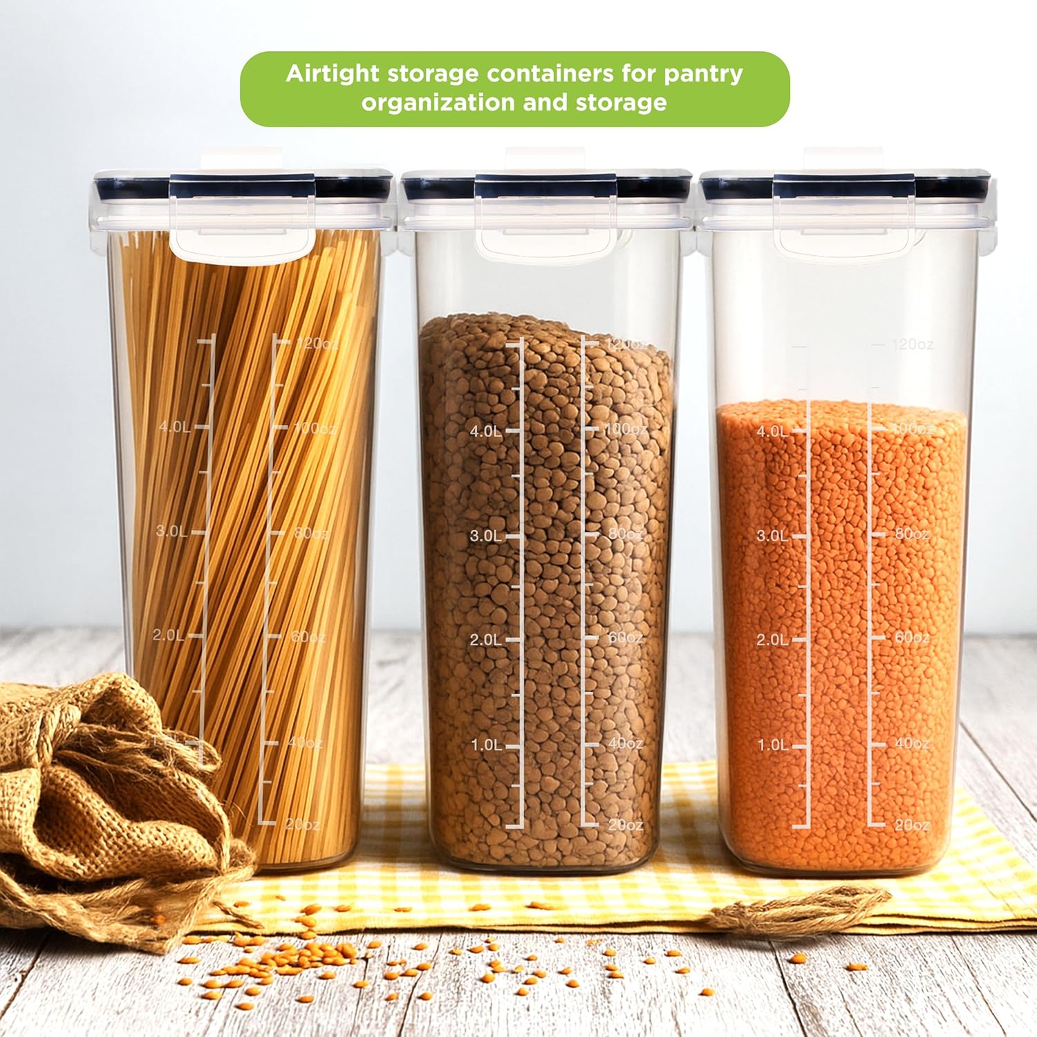Perfect for storing cereals, flour, sugar, coffee, rice, grains, beans, nuts, snacks, pet food, baking supplies, and more making it a versatile addition to your kitchen.
