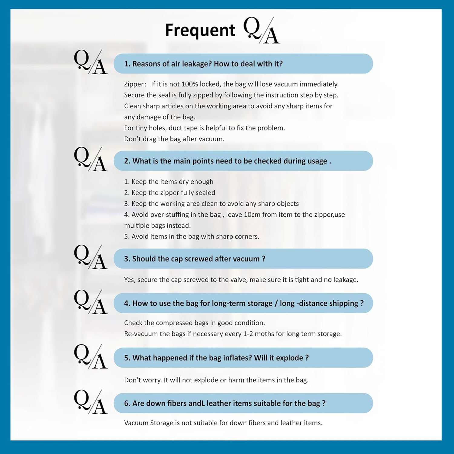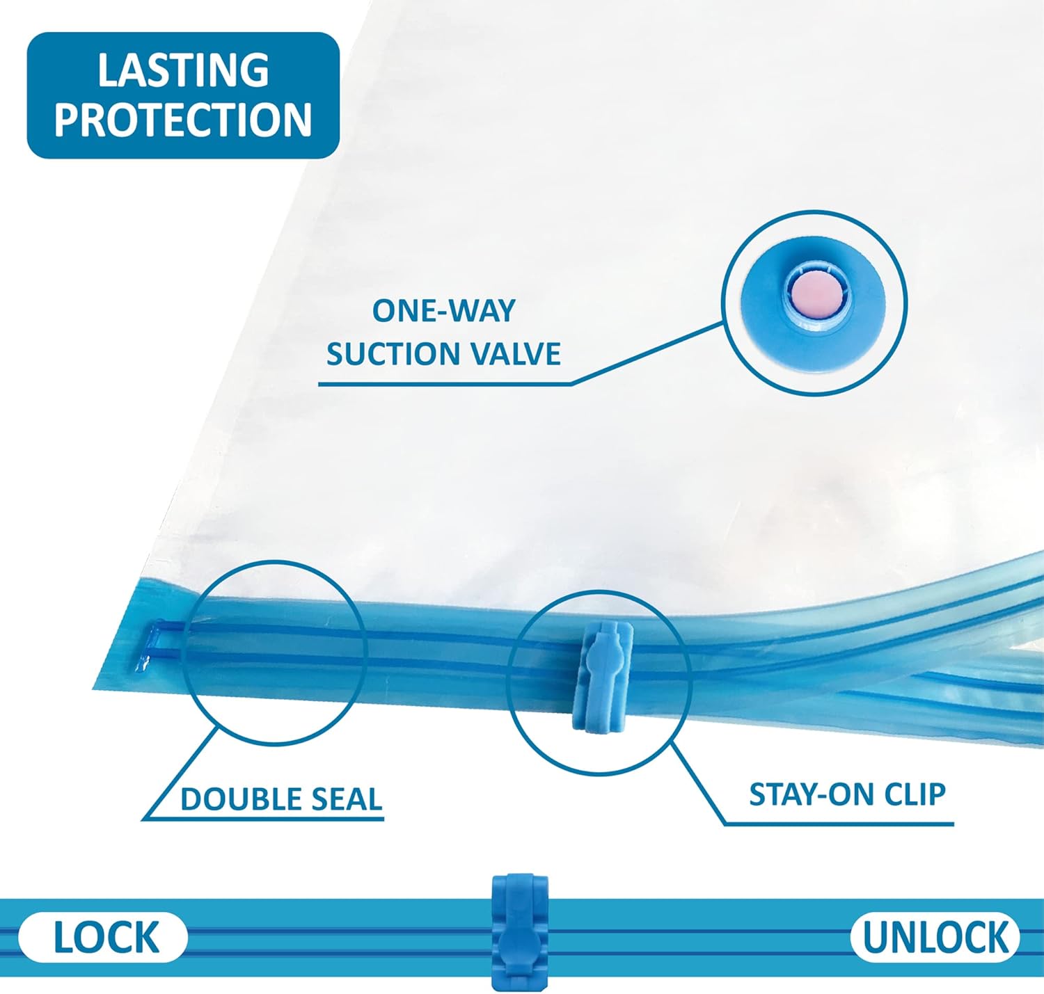 Each bag is built with a triple-seal turbo valve and double-zip design to create an airtight barrier. This prevents moisture, dust, and odors while keeping your items compressed and protected. Ideal for storing garments in high-humidity areas or preparing long-term storage in your garage or attic.
