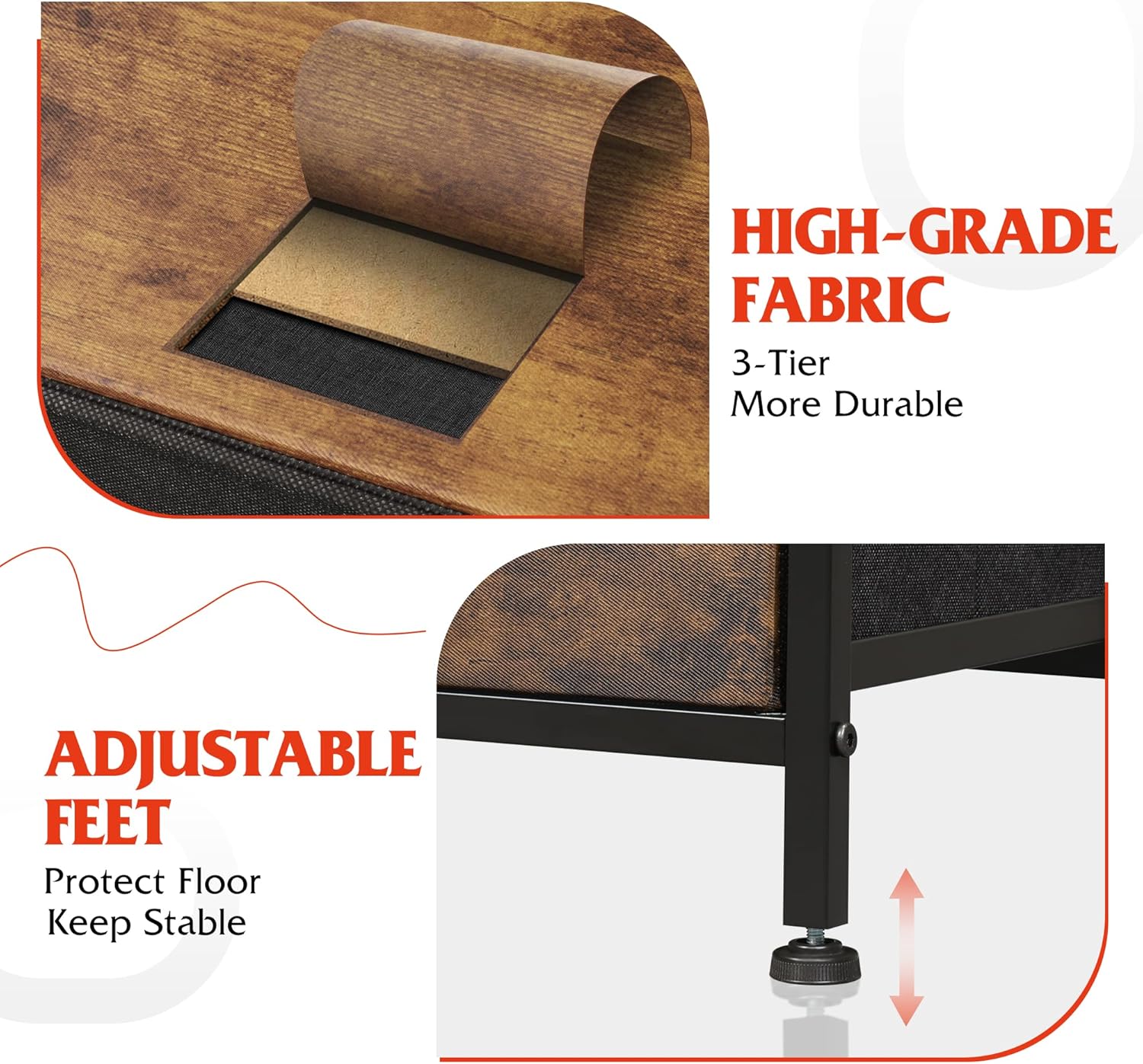 - Exquisite Design: Easy pull handles help open and close the drawers smoothly; 4 adjustable feet can protect your floor from scratches and are designed for uneven ground.
