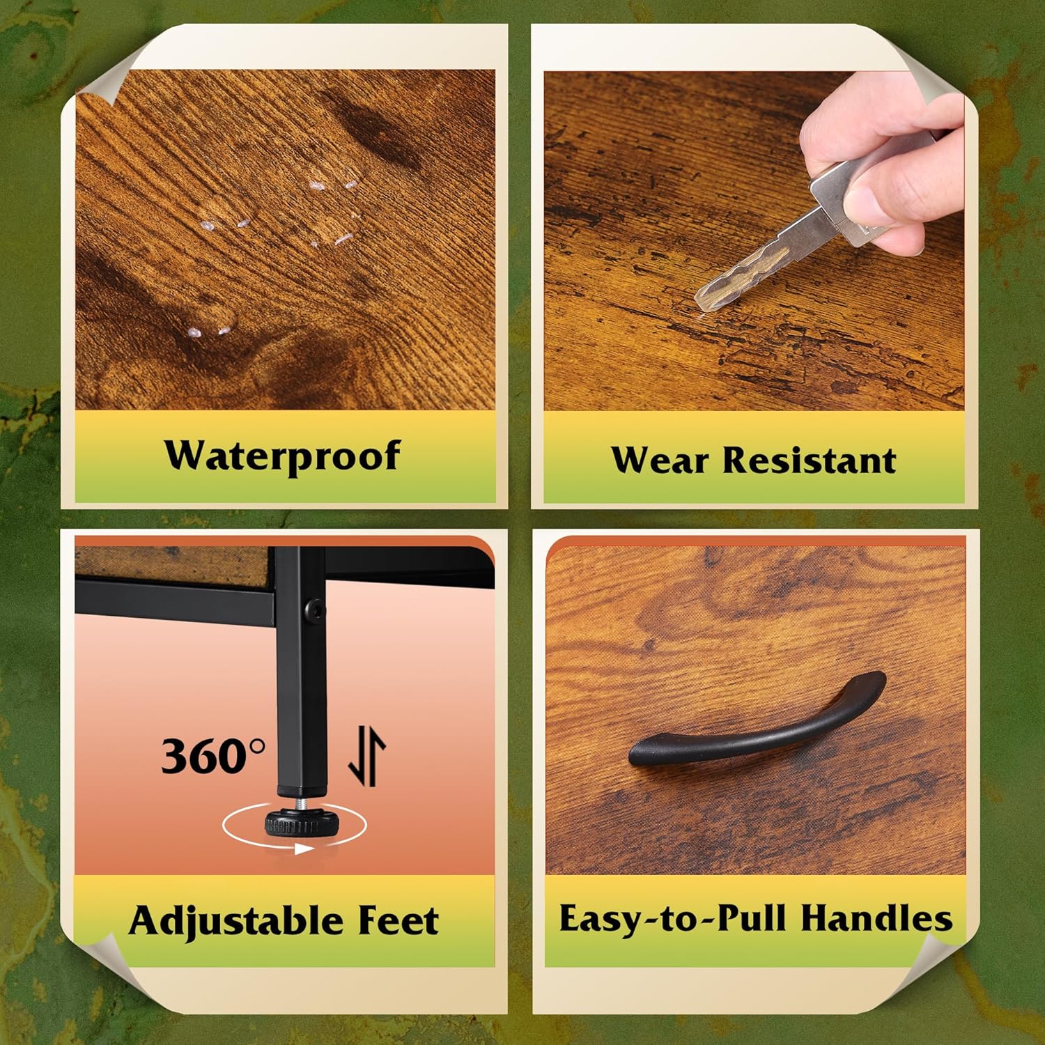 - STURDY STRUCTURE: Strong steel frame and water-resistant wood top offer stable support and ensure years of use; High-quality non-woven fabric drawers is easy to clean