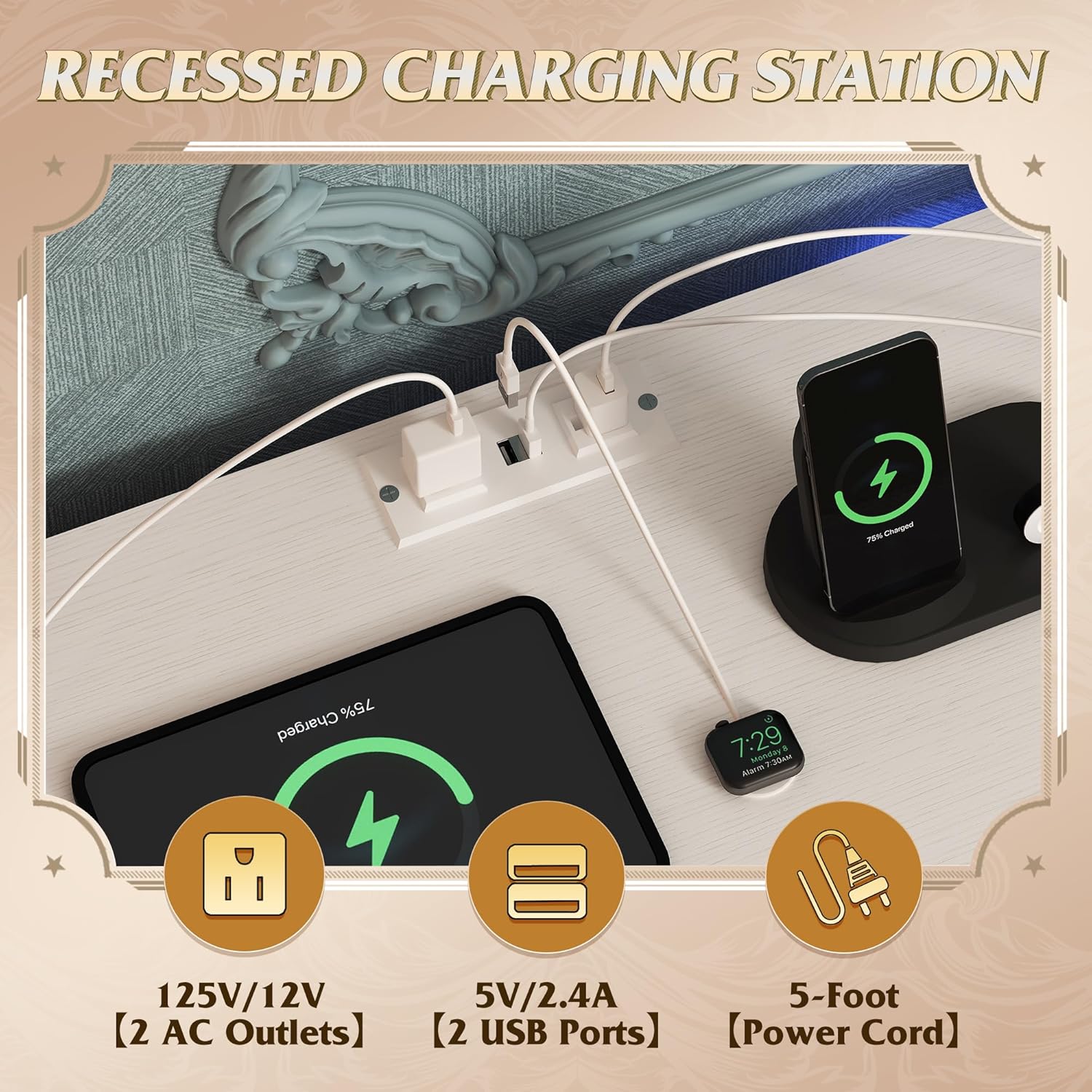 - With Power Outlet Say goodbye to messy wires! TV stands is equipped with 2 AC sockets +2 USB ports, 1.5m flexible cable length, TV, game console, router a power board can be done, instant increase desktop cleanliness by 50%, through UL/ETL certification, electricity safety!