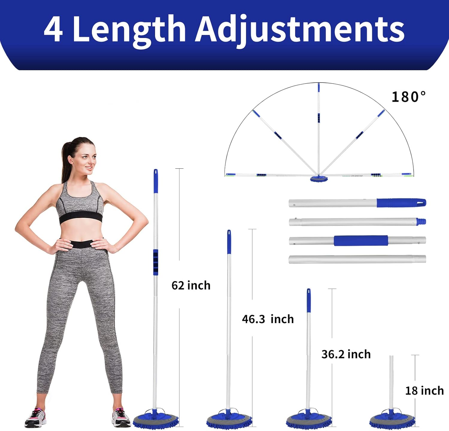 - Fantastic Function for Adjust Length The car wash mop has 4 aluminum poles which can be assembled into 32.6”,46.3” or 62” by using 2, 3 and 4 poles. Each pole of car washing kit uses the method of stuck fixing method to make the washing equipment rod stable and firm. Easily help you clean different height (the higher, the further or the lower wheel) without ladder. It is a cool creation for car fans!