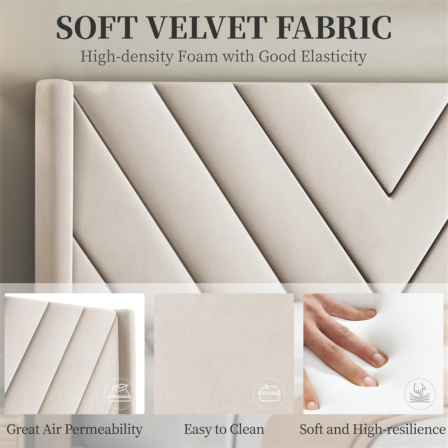 your room to the level of a quaint countryside getaway with its symmetrical geometric shape, subtle tone, and graceful wing side design detail - Soft to Touch: The velvet fabric and dense foam padding give you a soft and smooth touch, making the queen bed frame with tufted headboard comfortable to lean on and not easy to sag