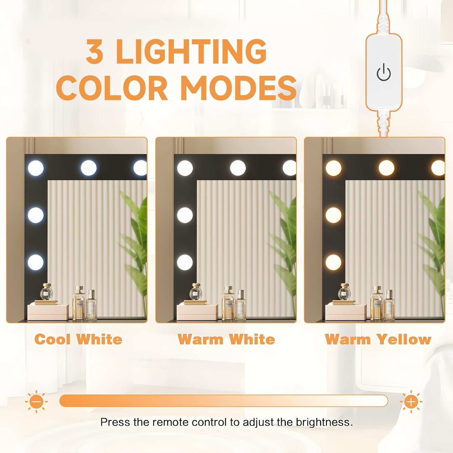 - LARGE MIRROR & 10 HOLLYWOOD STYLE LIGHT BULBS: Clean large mirror can show more of your beauty. With 10 LED bulbs with adjustable brightness and color, it perfectly adapts to all kinds of ambient light, creating the most comfortable environment for you to apply makeup easily.